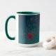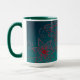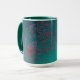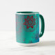 Cette tasse bleue et verte avec des accents turquoises comporte un dessin original basé sur des conceptions de mehndi de henné. Vert-foncé à l'arrière - plan d'aqua avec un motif floral en rouge marron fait un matin coloré se réveiller.