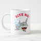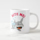 Des esprits créatifs de RGebbiePhoto. Un grand requin blanc en caricature portant un sourire suspect, avec des bulles et les mots "BITE ME!" ci-dessus. Scène illustrée sur l'océan.