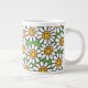 Un joli motif hippie de fleurs de marguerites blanches et jaunes avec des visages sur un arrière - plan vert.