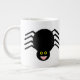 Cette énorme tasse présente une araignée noire éffrayante avec huit pattes poilues, des yeux jaunes avec de grands élèves noirs et sa bouche ouverte montrant ses crocs.