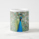 Profitez de vos boissons chaudes ou froides préférées et de la soupe dans cette tasse de 20 oz de taille jumbo qui présente une photo d'un beau paon bleu avec des plumes fantastiques colorées. L'image est enveloppée autour d'une tasse entière.
