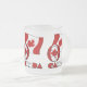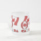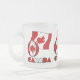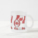 Conception amusante sur tasse en verre dépoli pour les amateurs de football ou de football. Vous y trouverez un ballon de football ou un ballon de football, tous décorés avec le drapeau du Canada. Il est devant un drapeau canadien agitant. En dessous, le mot CANADA se trouve en lettres rouges et blanches. Le design se déroule sur trois côtés de la tasse. Super plaisir pour soutenir TEAM CANADA toute l'année.