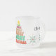 apportez une touche personnelle avec un nom personnalisé sur cette tasse festive. Dispose d'une conception ludique d'arbre de Noël avec le texte coloré "Joyeux Noël". Un verre dépoli pour un look élégant. Un cadeau idéal, un cadeau réfléchi et unique pour les amis et la famille. Nom et texte/message modifiables de votre choix.