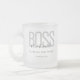 Une tasse BOSS avec votre nom, le nom de votre entreprise et sa date de création. La décoration est dans les tons gris et noir. Ajoutez simplement vos informations, ajoutez cette tasse de verre dépoli à votre panier et buvez votre café comme le patron que vous êtes.