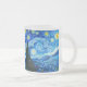 Frosted Glass Coffee Mug featuring Vincent van Gogh’s oil painting The Starry Night (1889). Inspired by his stay at an asylum, the art depicts a village underneath a night sky of blue and yellow moon and stars. A great gift for fans of Post-Impressionism and Dutch art.