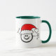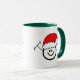 Nous avons le double l'acclamation de vacances ici avec notre icône heureuse de jambon dans l'esprit de Noël et sommes ci-dessous "Joyeux Noël" dans le code Morse. Nous avons également décoré les dits et les dahs en rouge et vert dans leurs groupes de lettre également. Au-dessous de vous peut ajouter un indicatif d'appel si vous souhaitez. Sinon, supprimez juste ce texte de la ligne pour la faire masquer. Nous avons équilibré la tasse en vert pour les vacances. Mais, vous pouvez acheter cette conception sur l'un des d'autres options de tasse ou de stein offertes aussi.