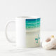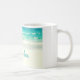 Cette tasse de plage comporte une photographie de l'océan bleu apaisant avec les vagues douces roulant sur le sable blanc.
