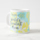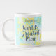 Meilleure Maman Mondiale Mélange Médias Floral Géant Mug. Jolie aquarelle mixte design avec des fleurs et des papillons aux couleurs ensoleillées de jaune et bleu. Inclut le texte décoratif, la plus grande maman du monde et le nom de choix. Appuyez sur le bouton Personnaliser pour ajouter le vôtre ! Un design élégant avec un beau message pour votre mère, belle-mère, belle-mère, belle-mère, belle-mère, mère d'être, première maman, grand-mère et tantes. Idéal pour la Fête des Mères, l'Anniversaire des Mères, le cadeau de Noël de la Mère, et juste parce que! Commandez AUJOURD'HUI et surprenez votre mère avec un cadeau d'amour.