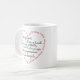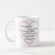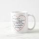 Cette tasse attrayante comporte une version court des Corinthiens 1 que le 13:4 "amour est patient, amour est aimable…". Cette tasse unique comporte les mots du vers dans une forme de coeur en plus des mots à l'intérieur du coeur.