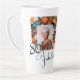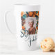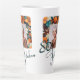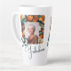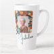 Elégant 80 et Fabulous Flower Motif Anniversaire Photo Latte Mug. 80 et texte fabuleux en script tendance et un motif de fleurs élégant et beau. Personnalisez-le avec votre nom et votre photo, et faites-lui une tasse de latte d'anniversaire fleurie personnalisée et élégante.