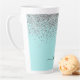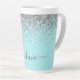 Tasse Latte Aqua Bleu Turquoise Argent Paillettes Monogramme