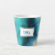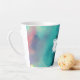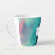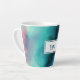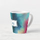Tasse en latte personnalisée avec un design abstrait cool et élégant. Les aquarelles se mélangent pour créer l'illusion d'une image spatiale. Vert avec des tourbillons de violet, jaune et rouge clair se mélangent avec un peu de points et d'étoiles blancs. Un cool trippy création. Un rectangle blanc superposé avec votre nom à l'intérieur.