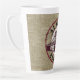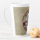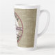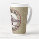 La tasse en latte classique est un faux arrière - plan de burlap avec timbre de style de voyage du pont Mobile Alabama en silhouette.