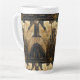 Joli latte Mug avec un motif Art Déco doré, marron et noir qui ressemble à de grands gratte-ciel devant un soleil levant abstrait. Design très élégant, populaire et élégant pour vous ou vos amis.