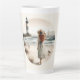Une jeune femme gracieuse, vêtue d'une robe blanche qui coule le long du rivage sablonneux, son casquette du soleil penche contre la brise en contemplant un phare rayé debout contre les vagues. Des herbes douces encadrent l'avant-plan tandis que des oiseaux marins et un voilier dérivent à travers l'horizon, ajoutant un sentiment de mouvement calme au paysage côtier. La douce aquarelle mêle romantisme et sérénité, créant une scène balnéaire intemporelle d'inspiration cottagecore, à la fois nostalgique et rêveuse. L'IA a généré des oeuvres d'art.