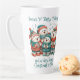 Amusez-vous dans l'ambiance des vacances avec cette tasse en latte festive, qui présente une image générée par l'IA d'ours polaires norvégiens, qui s'habillent avec des foulards, des toques, des pantalons et des chaussures, avec des touches décoratives de feuilles saints et de baies, et carolent "Sweet 'n' Tasty Tidings et a Very Beary Christmas !" de leurs chanslivres. Customisez la messagerie comme vous le souhaitez. Reverse affiche un design identique. Design © W.H. Sim. Voir plus sur zazzle.com/word2art
