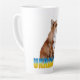 Une belle façon pour les amoureux des animaux de montrer leur soutien à l'Ukraine. Une jolie tasse en latte présente du renard rouge aquarelle avec du texte "Ukraine" et un papillon dans les couleurs bleu et jaune de leur drapeau national sur l'arrière - plan jaune.
