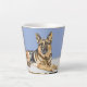 Cette tasse en latte présente un magnifique tableau d'un chien berger allemand, noir et bronzé, ou Alsacien. Cela ferait un cadeau parfait pour un amoureux des chiens, et parfait pour l'équipe avec des ustensiles de cuisine assortis.