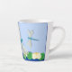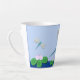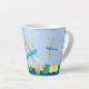 Cette tasse en latte présente ma conception de libellules turquoise flottant dans un beau ciel bleu sur les nénuphars. Une belle scène de détente et parfaite pour une longue pause café méritée. Joli pour égayer la cuisine et un grand cadeau.