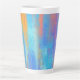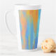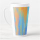 Brosse acrylique peinte en gros traits en bleu, turquoise, jaune et orange.