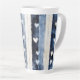Tasse Latte Bleu Blanc Denim Coeur rayures Anniversaire