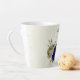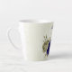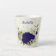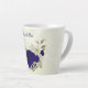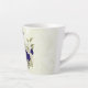 Magnifique tasse latte romantique avec des fleurs bleues royales et beiges et quelques feuilles .