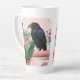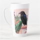 L'image montre un corbeau majestueux avec des plumes et des accents bleus brillants, assis fièrement sur une branche. Autour de lui, des feuilles vertes et luxuriantes, avec des tons roses et orangés, créaient une atmosphère tropicale vivante. Les éclaboussures et les lignes abstraites donnent à l'oeuvre d'art de la profondeur et une énergie mystérieuse et calme qui incite à la réflexion.