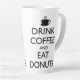 TASSE LATTE BOIRE DU CAFÉ ET MANGER DES DONUTS