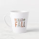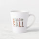 Ce design sur le thème de l'automne accueille chaleureusement la saison d'automne avec l'expression "Hello Fall". Les mots sont arrangés dans une disposition simple mais visuellement attrayante, avec "Hello" placé au-dessus de "Fall". Chaque lettre de l'expression est présentée dans une police grasse et bloquée, avec une texture légèrement désespérée, lui donnant un look rustique et patiné qui complète le thème automnal.