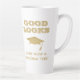 Good Looks et maintenant un Diplôme Trop Drôle Latte Mug. Citation amusante pour un diplômé - Bon look et maintenant un diplôme aussi. Casquette de graduation dorée et typographie. Un grand cadeau pour un diplômé qui a obtenu son diplôme.