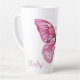 Cette chic tasse en latte présente un beau design mi-papillon mi-fleuri dans des teintes roses douces. Customisez-le avec un nom pour en faire un cadeau unique, personnel, parfait pour les amateurs de café, les amis ou la famille.