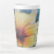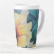 Cette tasse de latte de 17 oz est imprimée avec un motif d'hibiscus jaune dessiné à la main.