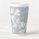Tasse Latte Brindilles délicates avec feuilles sur le bleu.
