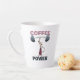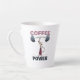Un haltérophile meerkat amusant sur une tasse en latte. Utilisez "Personnalisez ce modèle" pour modifier le texte "COFFEE POWER" et créer un cadeau unique et customisé. Une surprise pour un amateur de café, avec un dessin animé mignon d'un meerkat maigre en gros shorts, souriant alors qu'il soulève sans effort une énorme cloche avec un doigt. Pour les amateurs d'haltérophilie, les suricates et/ou le café.