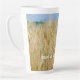 Latte Mug avec une photo de paysage rural d'été. Nous voyons des champs de blé jaune sous le ciel bleu. Un accent rustique à votre décor de cuisine, un cadeau élégant pour les amoureux de la campagne et de la ferme. Vous pouvez remplacer le texte "Avoir une journée merveilleuse" par votre propre message ou le supprimer. Pour d'autres modifications (style de police, couleur de police, position du texte), cliquez sur "Modifier la conception".
