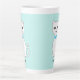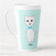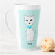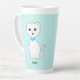 Belle caricature blanche de chat heureux sur une tasse bleu clair. Idéal pour tous.