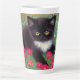 Latte Mug avec un chat tuxedo Gustav Klimt ! Cette adorable petite chatte noire et blanche est installée dans un champ de fleurs rouges, bleues, blanches et oranges. Un cadeau génial pour les amateurs d'art amoureux des chats et autrichiens !
