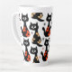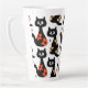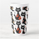 Un arrangement ludique et fantaisiste de chats noirs décorés avec des fleurs audacieuses et colorées dans les tons rouge, orange et beige. L'arrière - plan est blanc, ce qui contraste agréablement avec les personnages de chats foncés. Idéal pour un projet d'Halloween mignon ou toute autre période de l'année