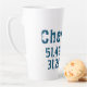 La conception de la tasse en latte comporte les coordonnées de latitude et de longitude pour Tchernihiv, Ukraine en caractères bleu foncé en détresse. Chernihiv est située dans le nord de l'Ukraine et a été surnommée "la ville des légendes".