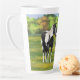 Tasse Latte Chevaux De Peinture De Pinto Noir En Pâturage Été
