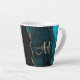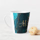 Prenez votre café du matin dans le style avec cette élégante tasse de latte monogramme personnalisée avec un arrière - plan d'agate turquoise accentué avec une parties scintillant fausse or. Personnalisez votre monogramme dans un script moderne et votre nom au-dessus. Un cadeau féminin unique pour toute compassion pour cette fille spéciale dans votre vie. Conçu pour vous par ExtremeTees. Bon appétit !