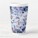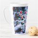 Éperviers et pigeon par la mangeoire en hiver. Des arbres de Noël couverts de neige ornés de boules rouges et bleues. Joyeux Noël. Une belle tasse en latte unique. Vous pouvez transférer cette conception à une grande variété d'autres produits, juste choisir un produit à partir d'une ligne ci-dessous. Amusez-vous et soyez heureux !