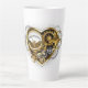 Coeur steampunk mécanique, volumétrique, avec manomètre, acier et or sur arrière - plan blanc. Style Steampunk.