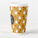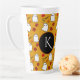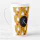 Cute coiffeuse latte mug pour la saison d'automne. Ciseaux, fantômes et feuilles d'automne sur un arrière - plan d'or d'automne. Ajoutez une seule initiale, en blanc sur un cercle noir, pour personnaliser pour un styliste spécial.