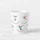 Cette tasse en latte unique est composée de colibris à gorge rubis, roux, à manne noire, Allen's, à bec large, Anna's et Calliope.