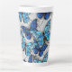 Vertical composition of réalistes, blue and white morpho butterflies on gray textured background. Morphine bleu.