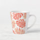 Tasse Latte Corail vivant tropical, feuilles d'or et monogramm