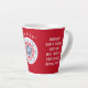 Personnalisable KING CHARLES III CORONATION Latte Mug en ROUGE, avec TEXTE PERSONNALISABLE basé sur le verset de la Bible chrétienne dans Matthieu 20:26. Design montre le rose d'Angleterre, le chardon d'Ecosse, la jonquille du Pays de Galles et le shamrock d'Irlande du Nord dans un magnifique emblème floral rouge et bleu. La citation dit que quiconque veut gouverner sur vous doit d'abord être votre serviteur, qui est basé sur Matthieu 20:26, qui est répété à l'avant et à l'arrière. Vous pouvez PERSONNALISER CE TEXTE avec votre propre libellé, par exemple ajouter votre nom de famille/d'organisation. Le libellé arrondi indique ICH DIEN (Je sert - devise royale) et vous pouvez AJOUTER VOTRE NOM ici à la place. Cette tasse en latte de couronnement du roi Charles III vous ferait un grand cadeau commémoratif pour célébrer cette occasion capitale dans l'histoire royale britannique avec votre famille, vos amis, vos collègues et vos clients. Offres assorties disponibles.