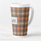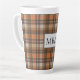 Motif plaid couleur automne/automne avec des couleurs orange, marron, or et vert. Personnalisez cette tasse de latte élégante avec monogramme ou nom