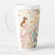 Cute princess with tiara in pink dress, with flowers and butterflies design.